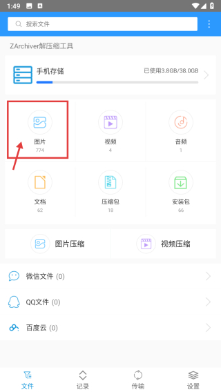 1、打开文件管理类应用,点击图片选项,进入图片分类页面。
