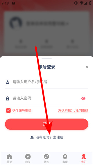 3、在登录窗口中点击去注册选项,进入注册账号页面。