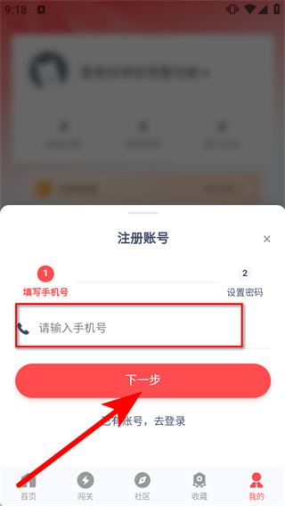4、在注册页面的手机框中填写要注册的手机号码,点击下一步。