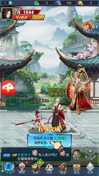 2、在游戏主界面,点击显示任务完成的开始灵务之路按钮,推进初始任务。