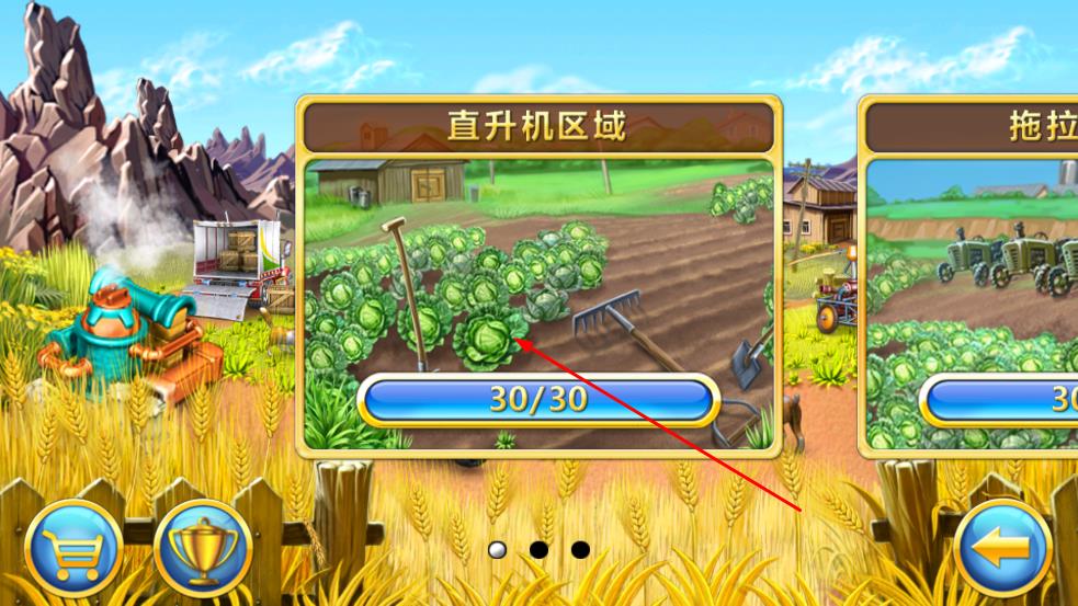 2、查看直升机区域的卷心菜种植进度,确认进度条完成后推进至游戏关卡。