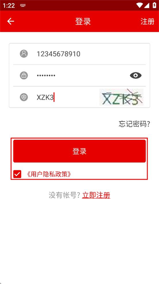 4、勾选用户隐私政策选项,点击登录按钮,尝试进入应用的个人功能页面。