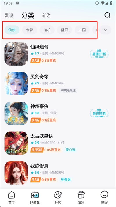 2、进入发现页面找寻游戏时,可以选择分类查看更多的游戏并进行了解和下载非常简单;