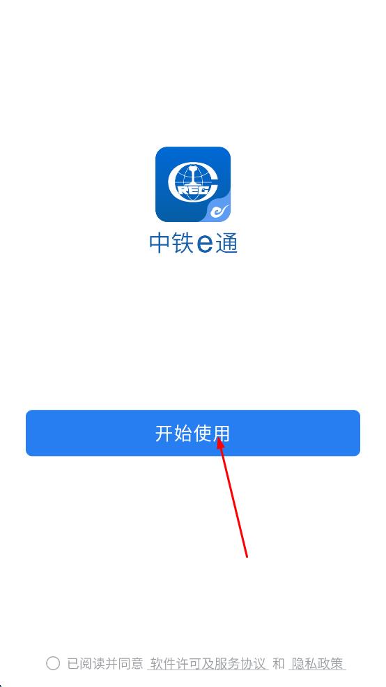 1、打开中铁e通APP,在弹出的隐私保护指引页面,点击“同意”,进入APP启动页面后,点击“开始使用”。
