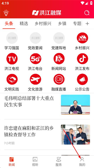 1、进入洪江融媒首页后,点击底部导航栏的我的选项,可进入个人中心页面。