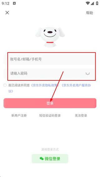 京东外卖怎么用密码登录