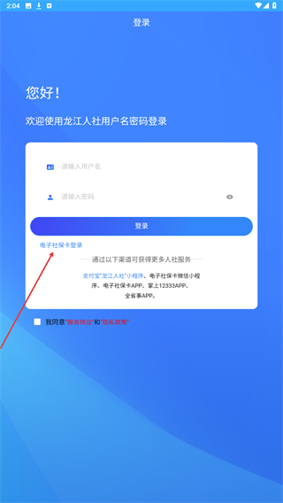 1、启动龙江人社App,进入时点击电子社保卡登录。