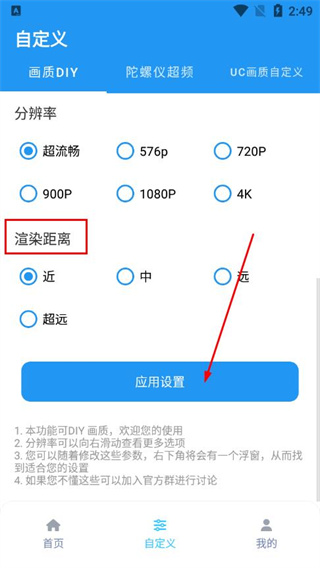 1、打开画质魔盒,点击底部的自定义选项,进入画质设置界面。