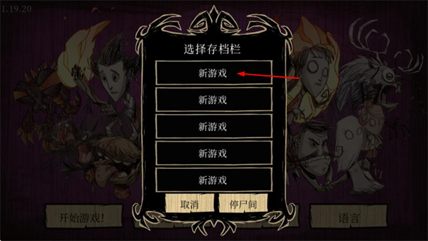 1、在游戏初始界面,点击开始游戏选项,进入存档栏选择的页面。