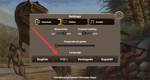 2、在设置页General栏,点击中国人选项,将游戏语言切为中文。