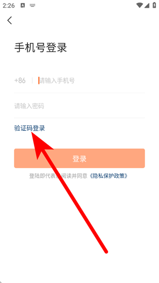 3、在手机号登录界面,点击验证码登录,进入验证码登录模式。