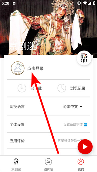 1、打开京剧迷,进入主界面后,点击底部导航栏的我的选项,进入个人中心页面。