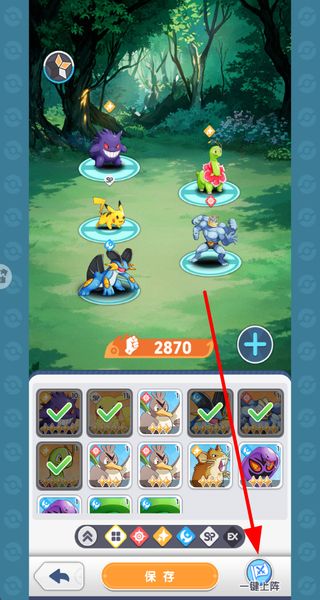2、布置精灵阵型,选择精灵并一键上阵,调整队伍的阵型,优化精灵的搭配,提升队伍战力助力挑战。