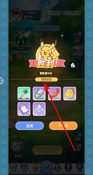 4、战斗胜利后领取奖励,获取金币、道具等资源,用于精灵升级或解锁新内容,增强队伍实力。
