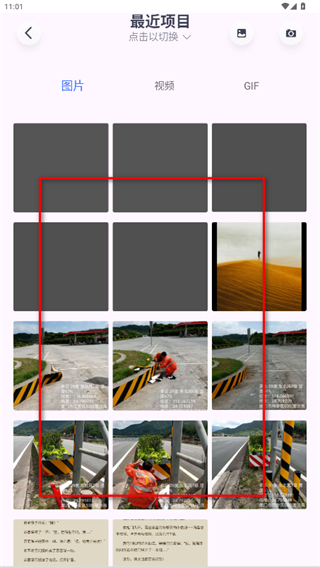 2、在图片选择界面中,选择带有水印的图片,进入图片编辑页面。