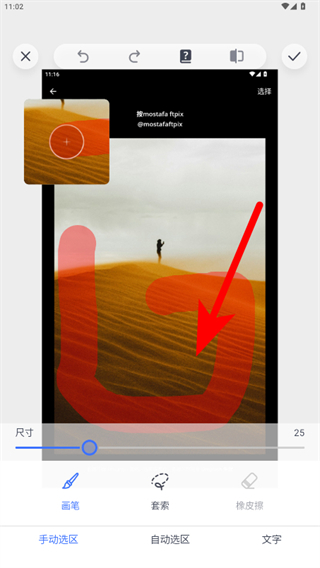 4、使用画笔等工具标记水印区域,完成后即可去除图片中的水印。