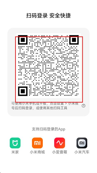 3、在登录页面,找到并点击下方的小米登录。