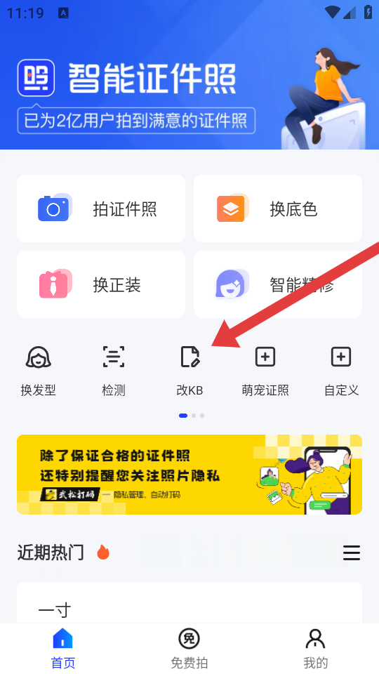 1、在智能证件照首页,点击功能栏中的改KB选项,进入图片选择界面。