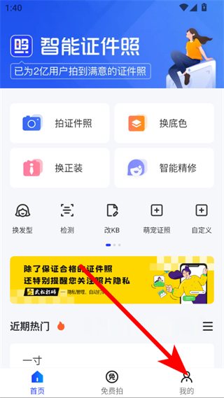 1、打开智能证件照APP,点击右下角我的,进入个人页面。