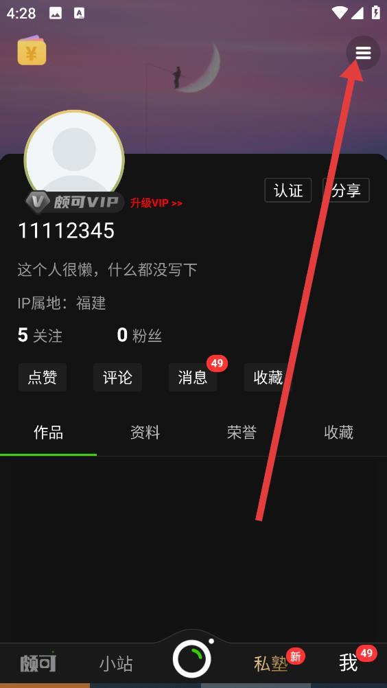 1、进入个人页面,再点击右上角三条横线图标打开侧边栏菜单。