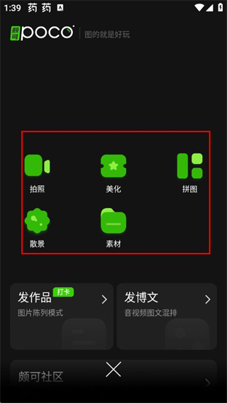 1、打开POCO相机APP,点击底部中间的功能按钮。