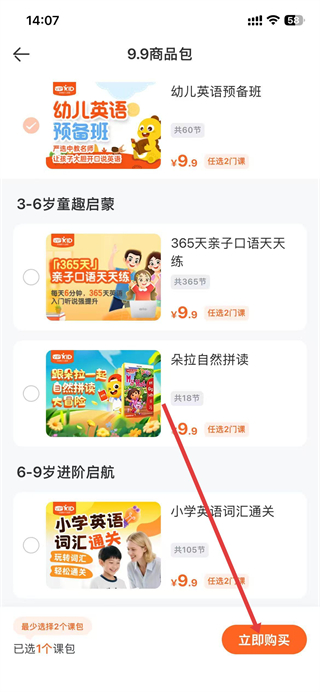 2、在优选课页面,找到想要购买的课程,点击去选购。