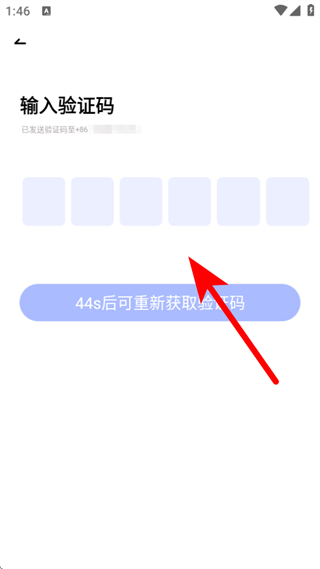 3、进入输入验证码页面,输入收到的短信验证码,完成账号注册。
