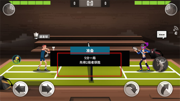 4、比赛中,可通过左下角左右箭头按钮控制角色前后移动,利用右下角击球按钮击球。