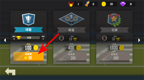 2、选择球童段位,需支付50金币参赛费,获胜可获得100金币奖励。
