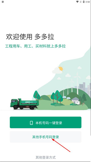 3、在登录选择页面,点击其他手机号码登录,进入验证码登录/注册页面。