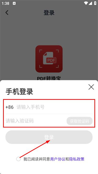 4、输入手机号和验证码后点击登录,完成登录操作。