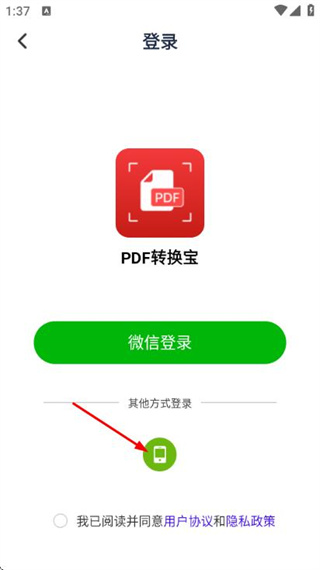 3、进入登录页面后,在登录页面选择手机登录方式。