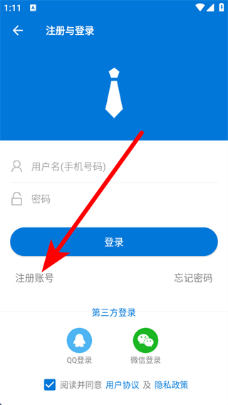 1、进入客户通的注册与登录页面,点击注册账号,进入手机注册页面。