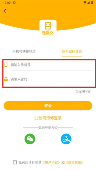嗨回收app怎么用账号密码登录