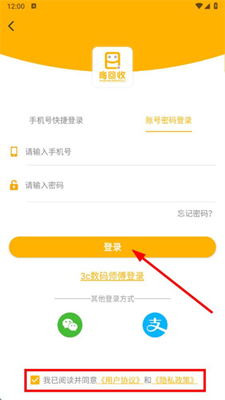 3、勾选同意用户协议和隐私政策,点击登录,即可完成密码登录操作。
