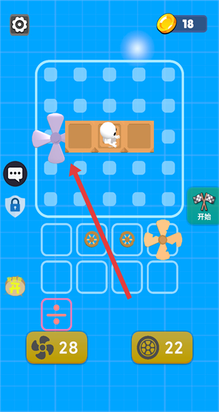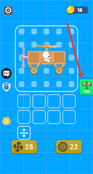 4、添加车轮等其他组件后,点击右侧开始按钮,启动组装好的载具,开始关卡挑战。