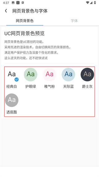 4、在网页背景色与字体页面,选择想要的背景颜色。