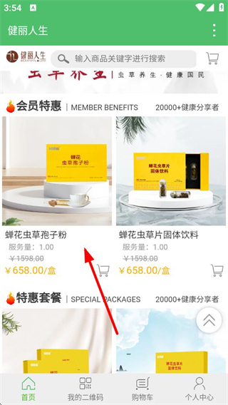 1、在健丽人生首页,点击孢子粉系列选项,进入对应商品列表页面。