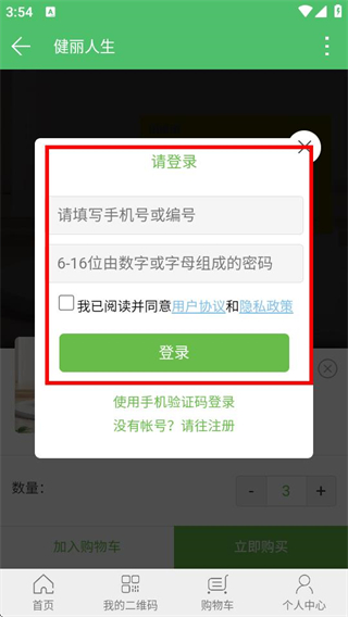 4、在购买确认页面,调整商品数量后点击立即购买,若未登录触发登录页面。