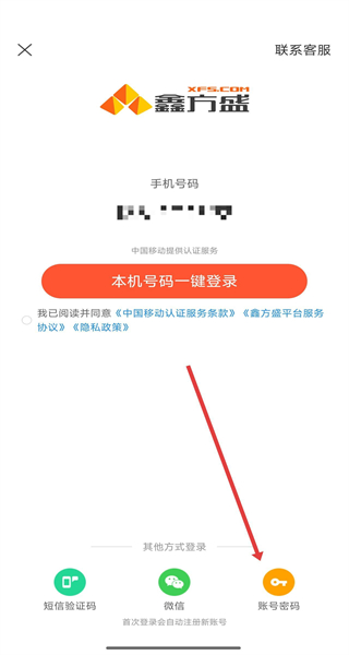 1、点击同意并继续按钮,同意鑫方盛平台服务协议与隐私政策,进入APP主界面。