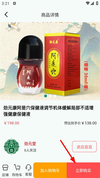3、在商品详情页面,点击立即购买按钮,可购买该商品。