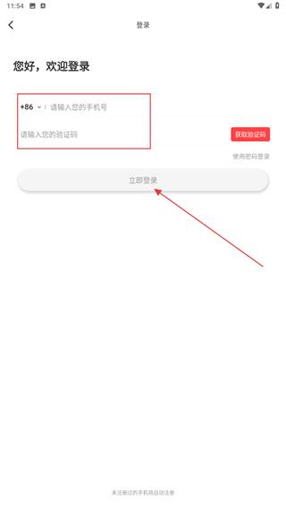 3、输入手机号、验证码后,点击立即登录即可完成。