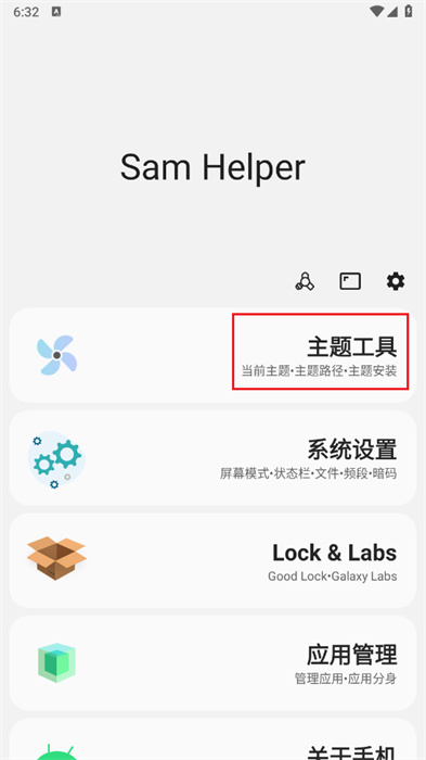 2、安装自定义主题和字体:sam helper软件获取当前使用的主题、图标、aod、壁纸的apk包名、查询已安装的apk路径等