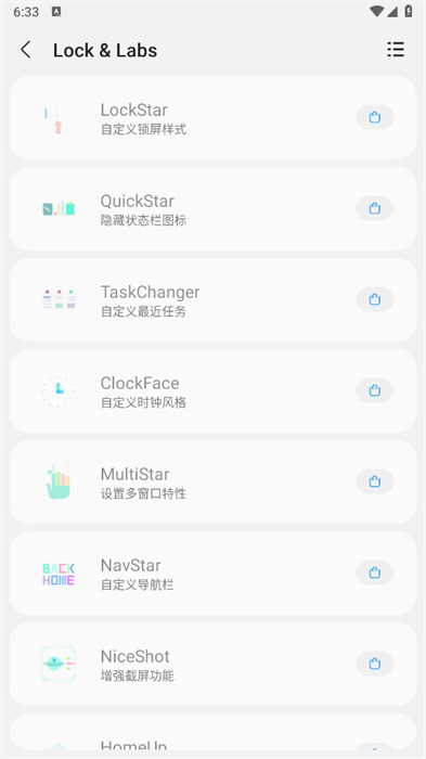 lock&labs:整合god lock和galaxy labs的功能,并可以进行排序、已安装的靠前排列,可以安装、卸载、长按添加快捷方式到桌面
