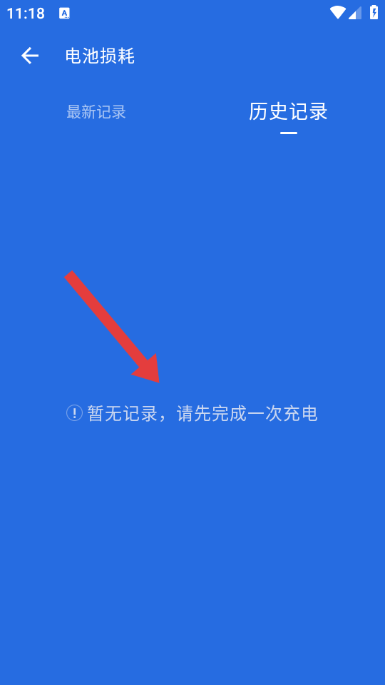 4、在历史记录的页面,若显示暂无记录,需完成一次充电后重新进行电池损耗测试。