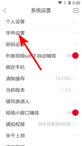 上游新闻怎么设置字体大小
