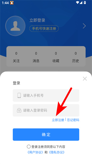 3、在手机号登录页面,点击立即注册选项,进入快速注册页面。