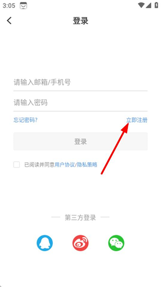 3、在登录页面,点击立即注册选项,进入注册页面。