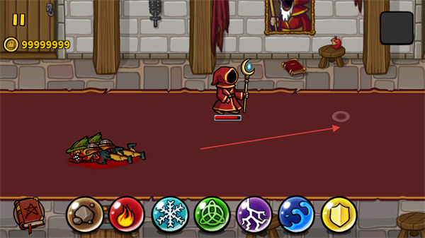 2、消灭敌人后收集金币,积累资源,提升魔法能力。