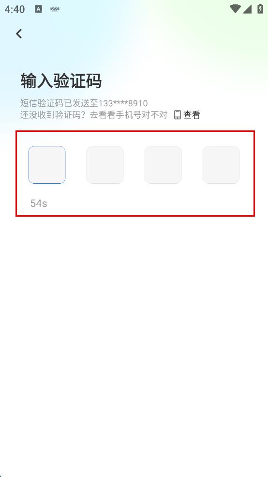 4、在输入验证码页面输入收到的短信验证码,完成登录操作。